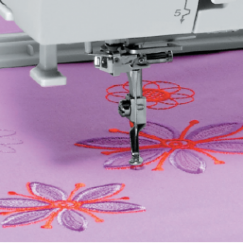 Хотите приобщиться к безграничному миру вышивки? C Elna eXpressive 830 вы можете создавать любые творческие проекты. Самое большое поле вышивки среди вышивальных машин Elna. Увеличенная рабочая поверхность. Полноцветный сенсорный ЖК дисплей с широкими возможностями для редактирования. В стандартную комплектацию входит расширительный столик, который позволит без проблем вышивать даже на самых объёмных проектах. Быстрая передача вышивальных дизайнов с компьютера на машину через прямое соединение. При необходимости дизайны можно передать с помощью USB flash. Elna eXpressive 830 – это новое слово в мире вышивки!